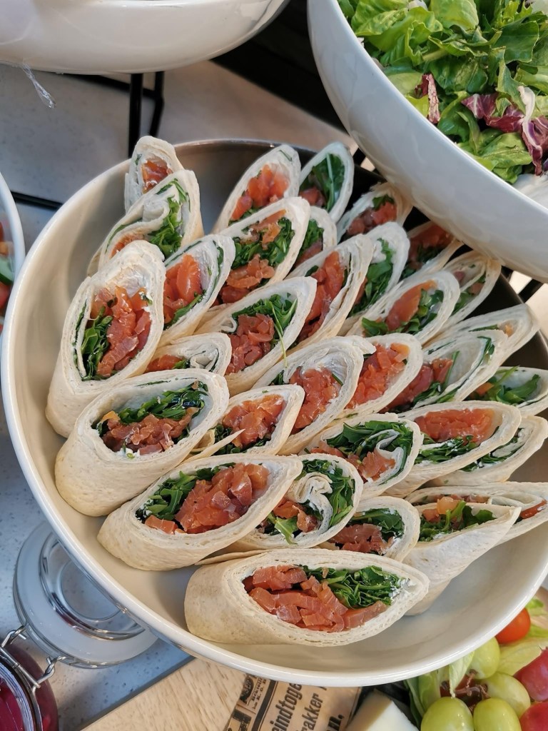 Vi tilbyr et bredt utvalg av smørbrød, snitter, salater og wraps – perfekt for alt fra møter og seminarer til bursdager og dåp. Våre retter er laget med ferske råvarer og tilpasset enhver smak, enten du ønsker klassiske snitter til et formelt arrangement eller friske salater og wraps til en uformell samling.